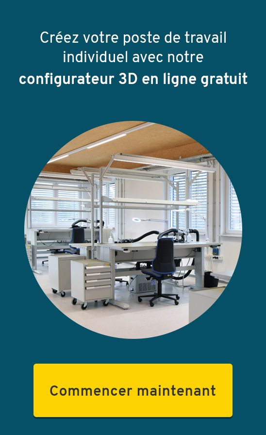 Les tables de travail se déclinent dans une grande variété de modèles destinés aux usages les plus divers. De la simple table de travail avec plateau mélaminé à la table de travail entièrement modulaire en passant par la table de travail équipée d'un jet d'air et conçue pour la manipulation de matières dangereuses, les modèles de notre vaste gamme trouvent leur place dans l'industrie, dans les ateliers, dans le commerce et au bureau. Vous y trouverez même des pupitres de travail et des tables de travail polyvalentes équipées de roulettes.
